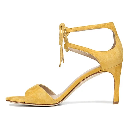 Mustard Yellow Suede Strappy Sandals Ankle Lace up Stiletto Heel Summer Party Evening Dress Shoes Comfort Versatile Wholesale